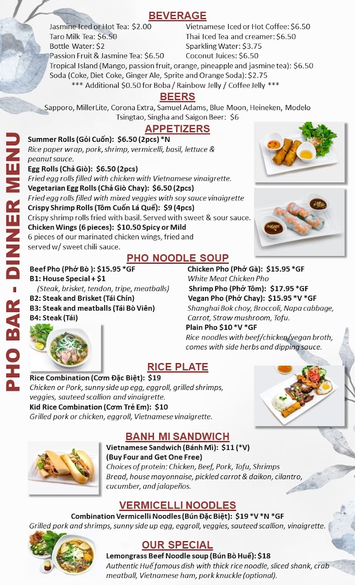 Overall, Pho Bar - Leesburg offers a delicious fusion of traditional Vietnamese comfort, impressive portions, and exceptional service, ensuring you'll want to return often!